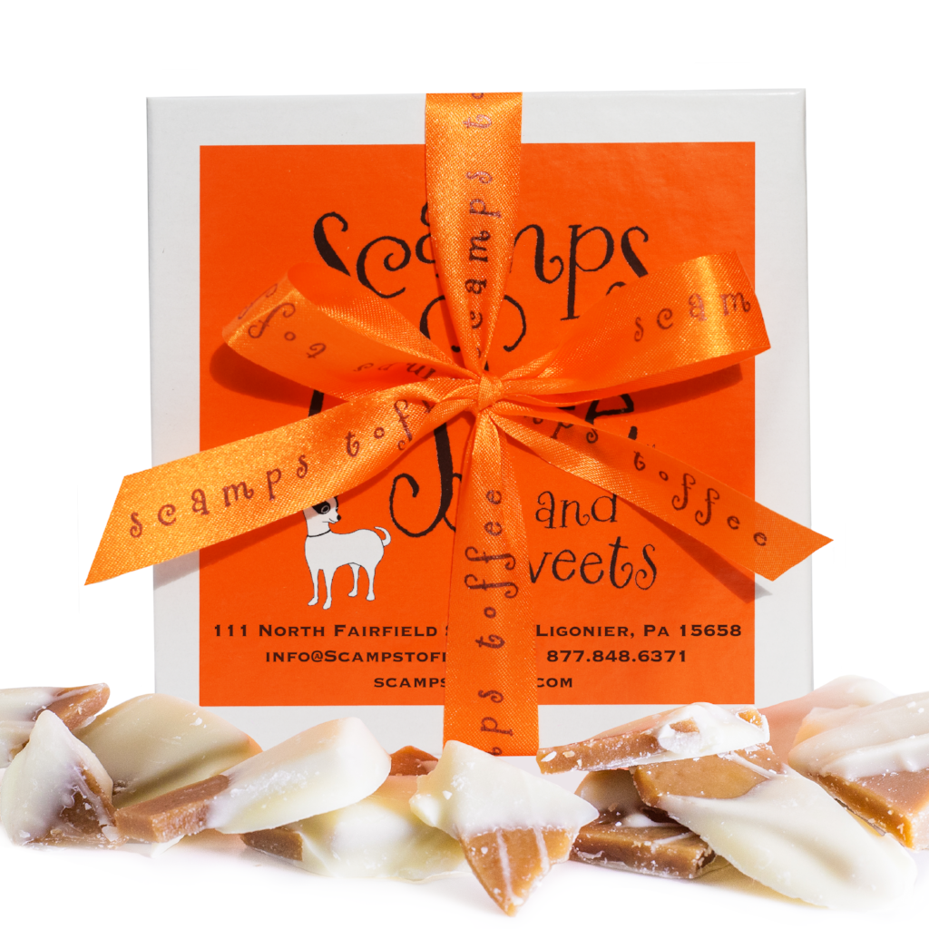 Warm, rich, buttery toffee hand dipped in a savory, mellow, and pure Belgian white chocolate with a subtle suggestion of vanilla; finished with fresh California walnuts. All natural, gluten-friendly and preservative free.
