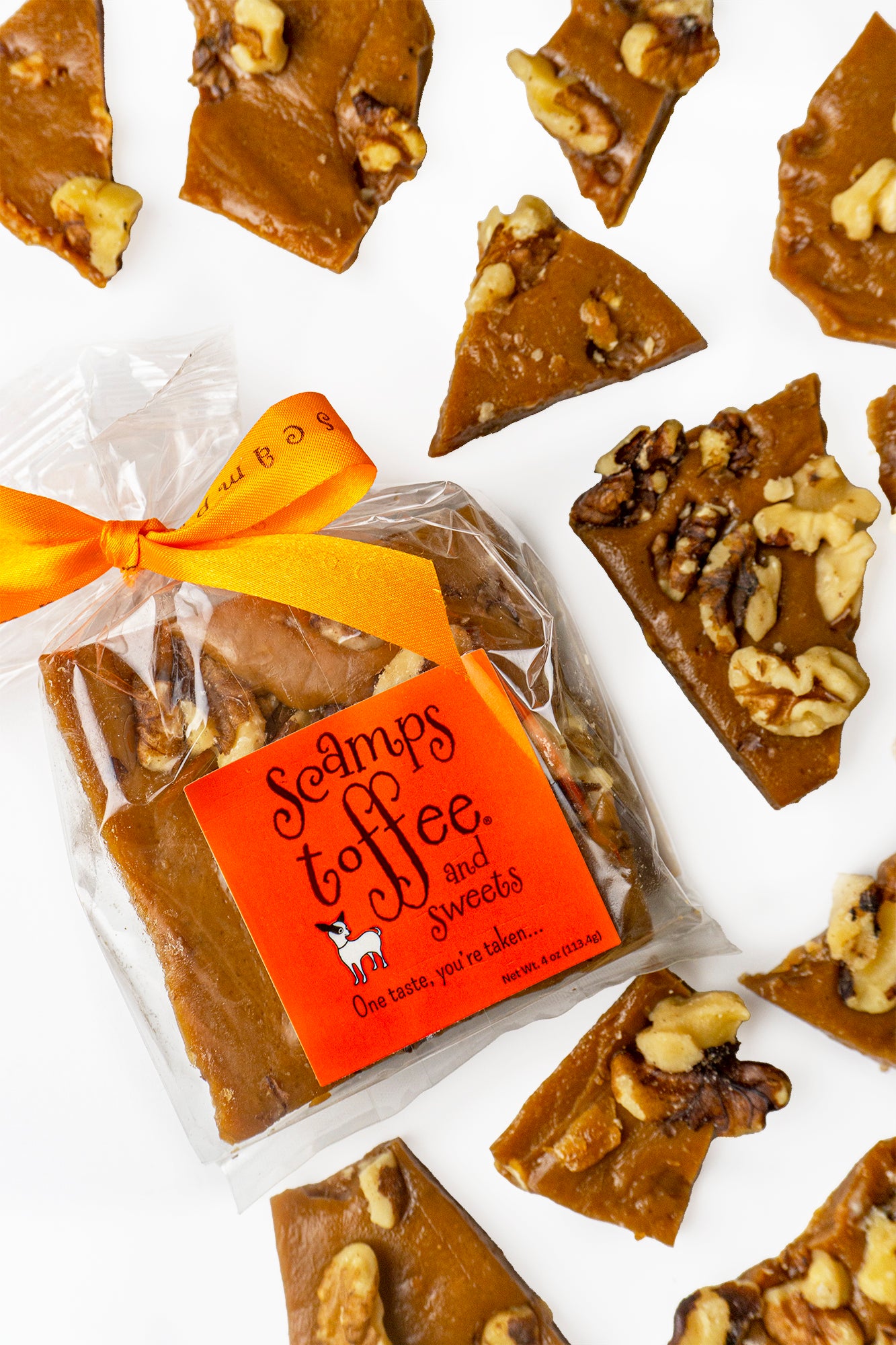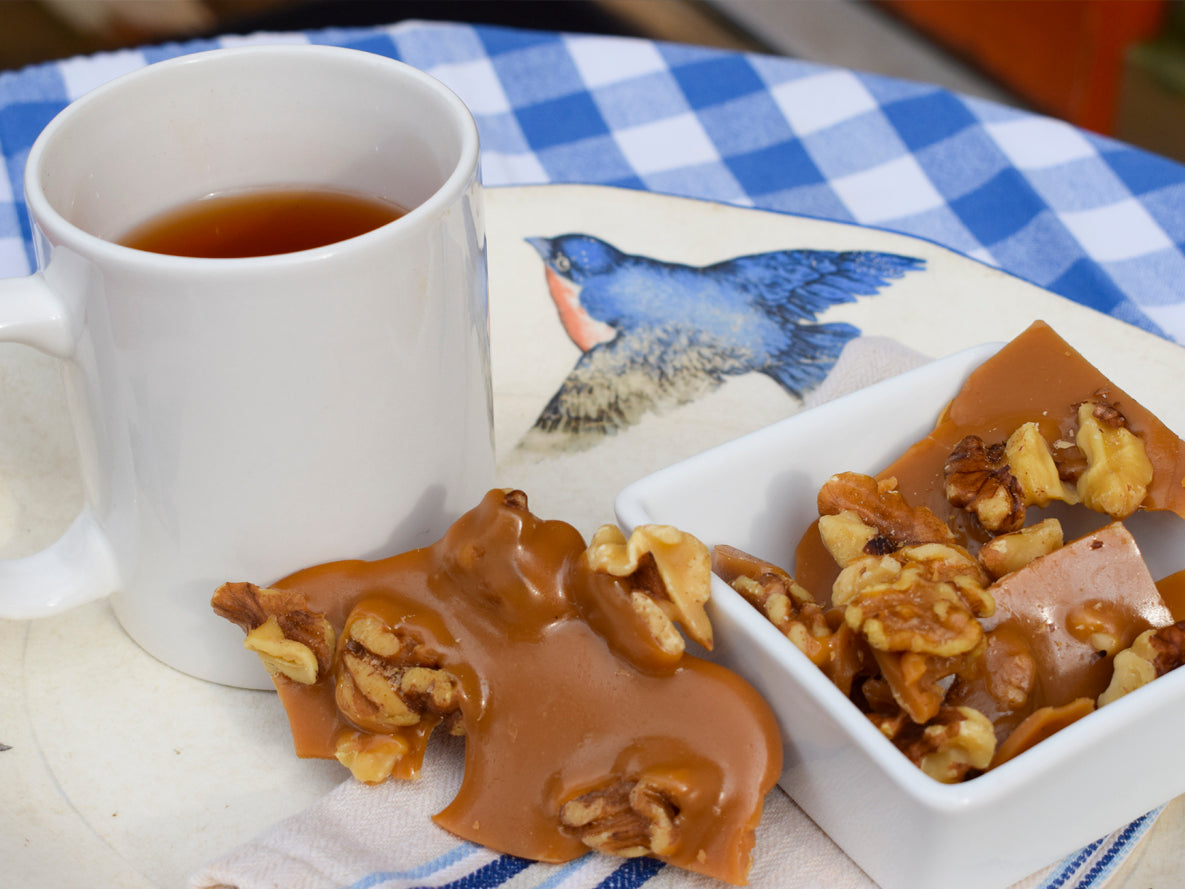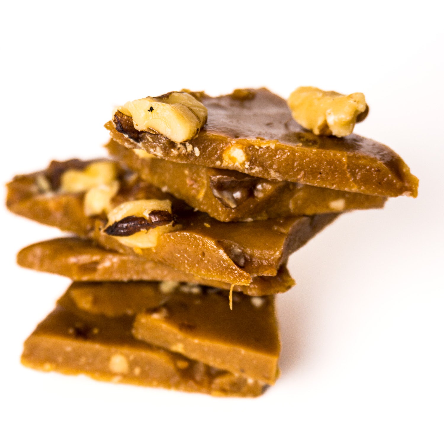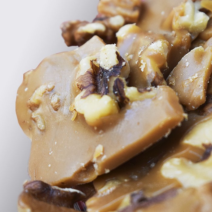 Our buttery toffee poured over whole walnuts. Pure toffee decadence. All natural, gluten-friendly and preservative free.