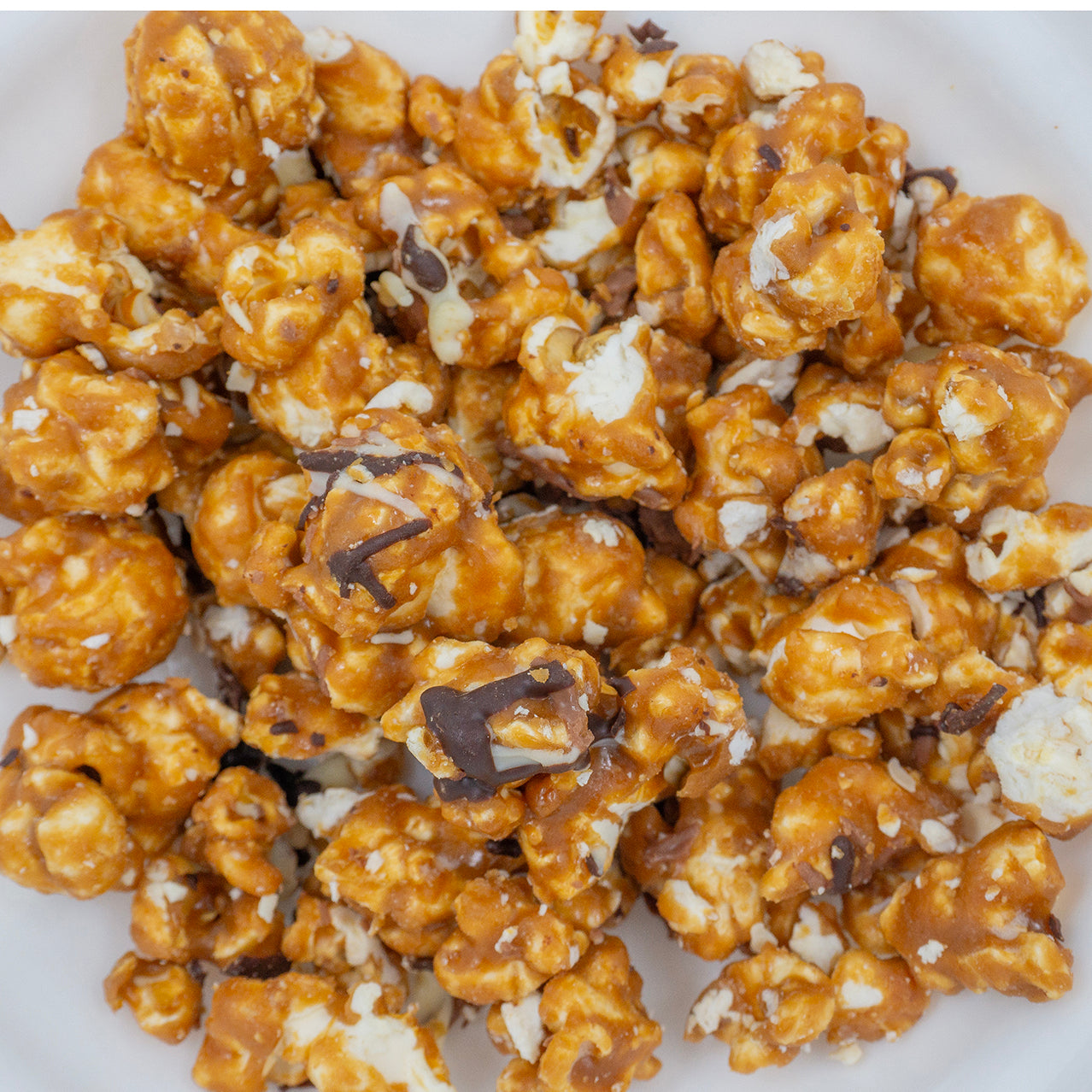 This Holiday Mini Toffee Popcorn makes the perfect on-the-go snacks to throw in your bag. The popcorn inside is a medley of buttery all-natural, gluten-friendly toffee tossed with perfectly air-popped popcorn, and of course all three of our imported Belgian 72% bittersweet Dark, Swiss Milk and Belgian White chocolates.